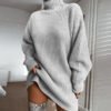 Solid Turtleneck Long Sweater Winter Warm Women Sweater Dress quantity